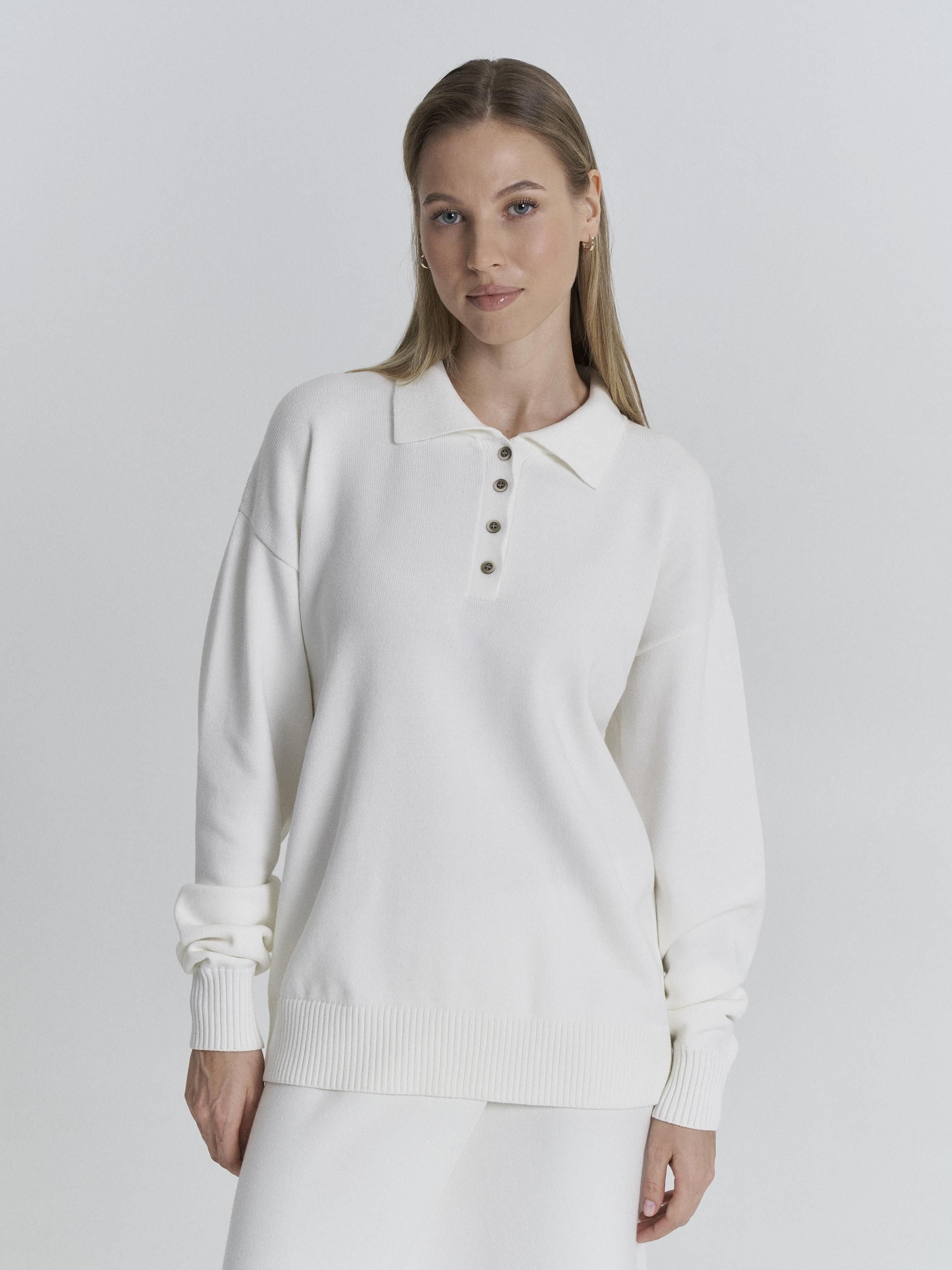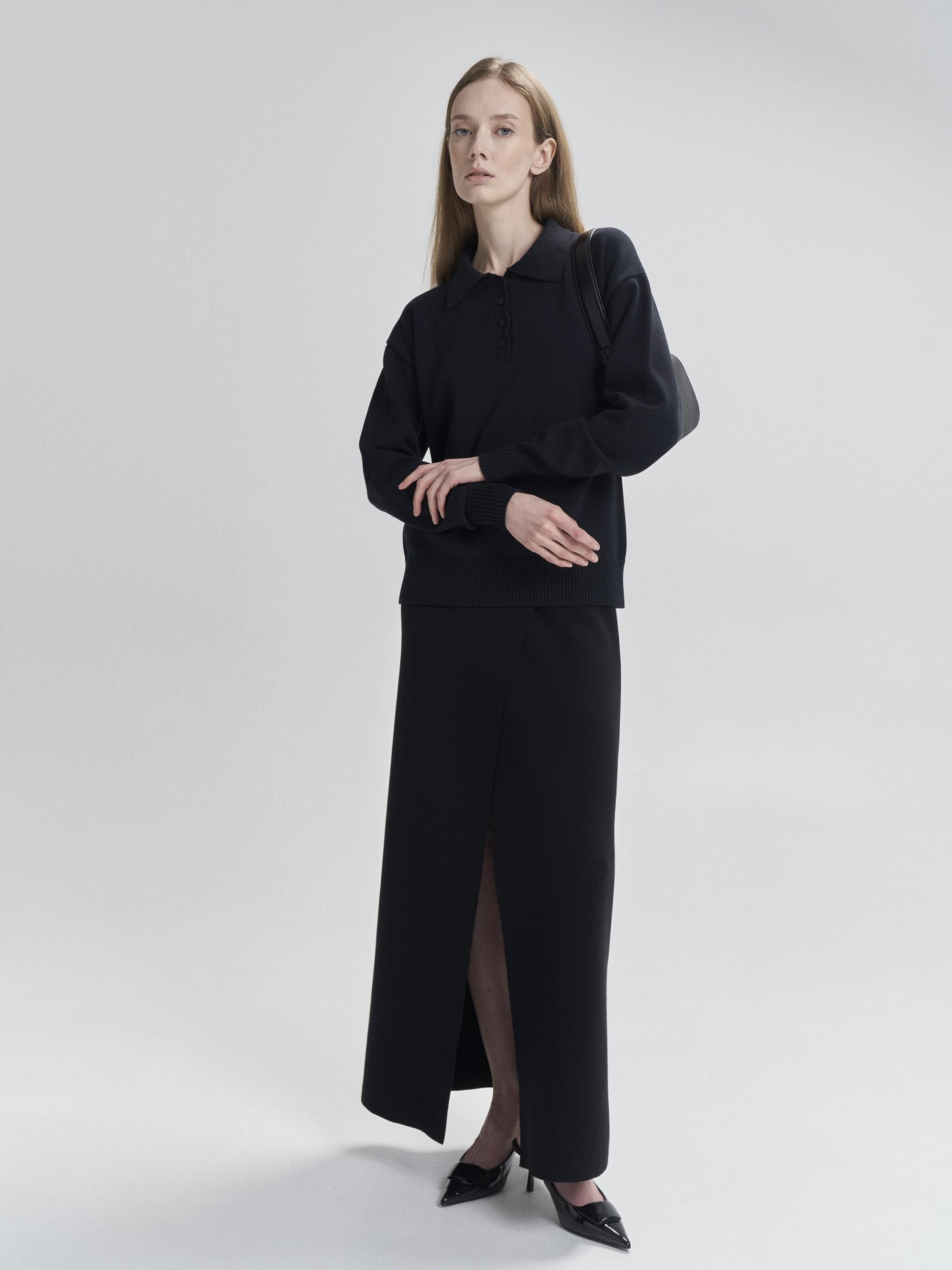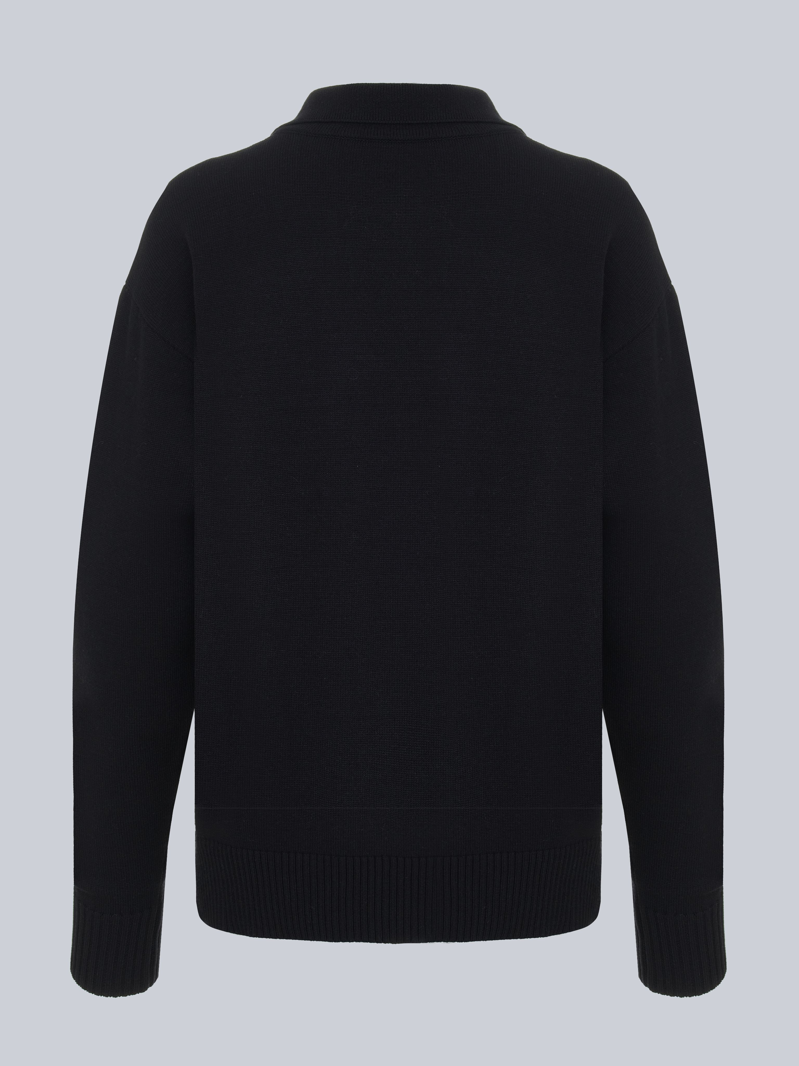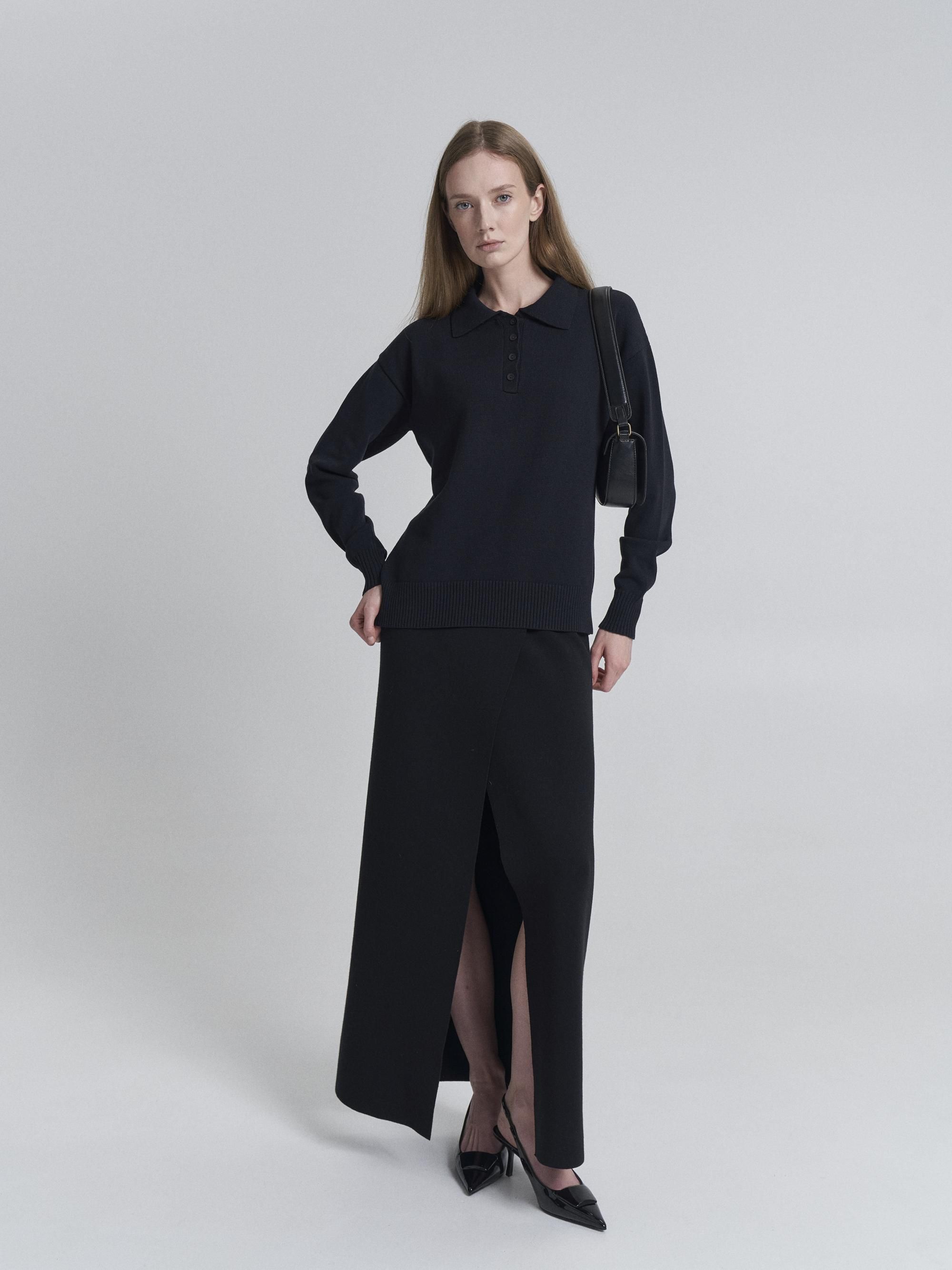 Черный джемпер оверсайз подчеркивает минимализм и универсальность. Модель выполнена из плотного хлопка, который гарантирует комфорт и долговечность. Свободный крой с длинными рукавами подходит для создания как повседневных образов, так и офисных комплектов.